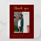 Diga gracias a todos sus invitados de graduación con esta elegante tarjeta de agradecimiento de graduación de Relieve metalizado de oro. Esta tarjeta presenta un fondo de color marrón con texto de Relieve metalizado dorado. El texto de la parte delantera y trasera se puede personalizar para crear su propio mensaje personal.
