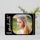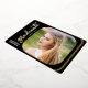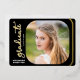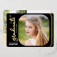 Esta elegante invitación a la fiesta de graduación de guiones muestra un verdadero Relieve metalizado dorado sobre un fondo negro. La foto cuadrada en la parte delantera está acentuada con esquinas redondeadas. El reverso ofrece una segunda foto vertical y un texto personalizado para que añada los detalles de la invitación a la fiesta.