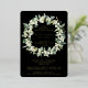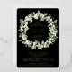 Una invitación a la ducha de nupcias o novias negras, con una corona de bolas de nieve pintadas a mano y tallos de eucalipto. El texto y los puntos dispersos en la parte delantera de la tarjeta son pulsados por Relieve metalizado. Vea esta colección en mi tienda para arreglos florales alternativos, colores diferentes y para coordinar elementos.