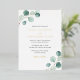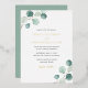 Elegante Invitación a la Boda con un diseño sencillo, con una vegetación de eucaliptos pintados en color de agua en la esquina superior izquierda y en la esquina inferior derecha. Tus nombres y la última línea están en verdadero Relieve metalizado de oro. El reverso es un color verde salado medio a juego. Esta rústica Invitación a la Boda con un toque moderno es ideal para un boda de primavera o verano.