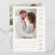 Haga una declaración audaz y elegante con su boda Save the Date eligiendo nuestra elegante y moderna boda fotográfica Save the Date Relieve metalizado dorado Invitation! Nuestro diseño moderno y elegante le asegurará el tono de su día especial. Esta foto de alta calidad ahorra que la tarjeta de fecha esté impresa con tarjeta mate gruesa y cuenta con fotografía tradicional así como escritura con letras a mano contemporánea y tipo de serif en Relieve metalizado dorado. En la parte trasera también puedes incluir tres de tus fotos de compromiso favoritas para hacerlo extra especial. Perfecto para las parejas que deseen mantenerse al frente de las últimas tendencias, este diseño único impresionará a sus huéspedes. Facilitamos la creación de la boda perfecta, ahorramos la fecha de una manera inolvidable. ¡Pida hoy mismo! Copyright Anastasia Surridge Designs, todos los derechos reservados.