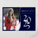 Esta moderna y elegante invitación a graduarse de Relieve metalizado color azul marino plateado presenta una foto del graduado y puede ser personalizada para complementar sus colores escolares o el tema de su graduación. Girar la tarjeta y utilizar las herramientas de diseño para actualizarla con el texto. También disponible como descarga digital.