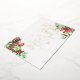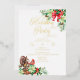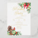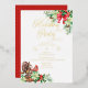 Los arreglos florales de vacaciones originales en las esquinas superior derecha e inferior izquierda enmarcan perfectamente los detalles de este texto del guión "Fiesta de vacaciones" diseño. Con un texto real de Relieve metalizado de oro, la elegancia de tus planes de celebración será aparente. La parte trasera está decorada con un fondo rojo y coordinado con pequeños puntos de oro falsos. Diseño compuesto por Holiday Hearts Designs.