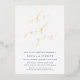La invitación simple y elegante a la fiesta de compromiso incluye "ella dijo que sí" en letras de guiones de caligrafía de Relieve metalizado de oro de moda. Personalice los detalles de la celebración de su compromiso debajo. Las invitaciones de los participantes se revertirán a azul marino sólido.