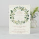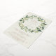 Una invitación a la cena de un boda crema, para cuando el evento o eventos están todos basados en el mismo lugar. Con una corona de nieve pintada a mano y eucalipto. El texto y los puntos dispersos en la parte delantera de la tarjeta son pulsados por Relieve metalizado. Vea esta colección en mi tienda para arreglos florales alternativos, colores diferentes y para coordinar elementos.