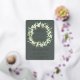Una invitación a cenar a un boda de color gris oscuro y verde, para cuando el evento o eventos están todos basados en el mismo lugar. Con una corona de nieve pintada a mano y eucalipto. El texto y los puntos dispersos en la parte delantera de la tarjeta son pulsados por Relieve metalizado. Vea esta colección en mi tienda para arreglos florales alternativos, colores diferentes y para coordinar elementos.
