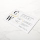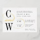 Las invitaciones a la cena de los ensayos elegantes incluyen sus iniciales en elegantes letras blancas, junto con una ornamentada estocada "y" en Relieve metalizado dorado. Personaliza con tus detalles de la ceremonia de boda, el ensayo y la cena o la celebración.