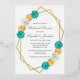 Invitación Con Relieve Metalizado Ensayo geométrico floral Verde azulado naranja Cen