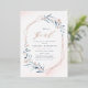 La vegetación moderna es una invitación Chica a la ducha de bebé con un diseño rústico de color azul polvoriento color agua vegetal botánico con hojas de Relieve metalizado oro rosa real y marco geométrico, simple y elegante. Ver todas las piezas coincidentes de la colección