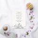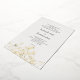 Las ramas de delicados lirios de las flores de primavera del valle, en un bonito dibujo floral de arte tinto chino adornado con un verdadero Relieve metalizado de oro, crean un marco romántico, moda, elegante y caprichoso en este elegante, moderno, sencillo y sofisticado patrón de invitación a la boda formal de primavera que presenta tipografía moderna. Esta invitación a bodas con dibujos artísticos sería una opción encantadora para las parejas que aman los marcos florales, las flores del lirio del valle, los dibujos artísticos y las invitaciones contemporáneas formales a la boda.