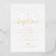 Invitación Con Relieve Metalizado escritura simple bautizo cruzado de oro