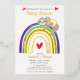 Invitación Con Relieve Metalizado Eslovaco Rainbow Heart Boy Baby Shower Cute Real G