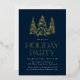 Invite a los huéspedes a su fiesta de vacaciones con estilo, con estas elegantes invitaciones para fiestas de Relieve metalizado Sparkling Winter Pine. La moderna fiesta de vacaciones invita a disfrutar de tres pinos de Relieve metalizado dorado con fondo marino. "Fiesta de vacaciones" se muestra en las letras de moda de Relieve metalizado dorado con los detalles de tu fiesta de vacaciones que se muestran a continuación. Las vacaciones en Relieve metalizado marino y dorado son perfectas tanto para familias como para viajes de negocios o de negocios.