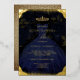 Invitación Con Relieve Metalizado Espuma Azul Dorado Vestido Tiara Quinceanera