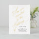 Haga una gran primera impresión con el Cliente Invitado a nuestra Invitación a la Boda Relieve metalizado dorado Boda. Con un extenso guión de Relieve metalizado dorado de estilo manuscrito que dice "Estás invitado al Boda de", este diseño ofrece una declaración audaz y glamorosa con un equilibrio de caligrafía expresiva y un tipo limpio y elegante.