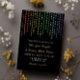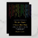 Invitación informal de matrimonio LGBT con guirnaldas estrellas verticales en colores arcoiris y Relieve metalizado dorado en un fondo oscuro con una moderna redacción informal de boda y tus nombres en un guión dorado.