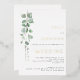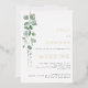 Moderna acuarela Eucalyptus Boda Gold Real. Las elegantes hojas de eucalipto caen desde la parte superior izquierda, con la tipografía minimalista moderna y tus nombres y Boda en Relieve metalizado real en oro, plata o oro rosa. Añade tu código QR a la página de respuesta de tu sitio web boda al revés, haciendo una opción conveniente para que tus invitados puedan hacer rsvp online y ver más detalles.