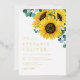 Invite a los huéspedes a su boda con esta invitación a la boda de girasol personalizable. Cuenta con un ramo de flores acuáticas de girasoles y hojas de eucalipto. Personalice esta invitación a la boda de Relieve metalizado de oro añadiendo sus propios detalles. Esta invitación a la boda de girasol es perfecta para bodas de verano y otoño.