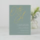 Una hermosa tipografía basada en una invitación a una boda monograma con sus iniciales en letras de Relieve metalizado de oro sobredimensionadas en la parte superior, en tono de tonos para un efecto marca de agua. Personalice los detalles de su boda con letras clásicas de serif alineadas en la parte inferior derecha. Nuestro coloreaje Eucalyptus es una elegante mezcla de verduras polvorientas, con letras verdes pálidas y blancas sobre un fondo verde sabio.