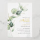 Invitación Con Relieve Metalizado Eucalyptus Greenery Baby Shower Gold