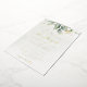 Invitación Con Relieve Metalizado Eucalyptus Greenery Gold deja Boda botánico