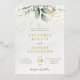 Hermosa invitación a la boda con eucalipto acuarela y hojas de Relieve metalizado dorado. La elección perfecta para los bodas de primavera y verano.