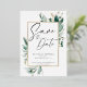Invitación Con Relieve Metalizado Eucalyptus Greenery Romántico Boda Guardar fecha