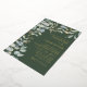 Bonita y sofisticada invitación a la boda, con originales obras de arte en acuarela de eucalipto y follaje en tonos verde sabio y azul polvoriento sobre un fondo verde sabio oscuro con verdaderas manchas de oro de Relieve metalizado y texto. Personalizar con facilidad.