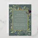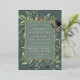 La invitación al murciélago botánico de moda mitzvah tiene un borde de hojas botánicas verdes de sabio exuberante y un follaje eucalipto de color agua con guarnecido de Relieve metalizado dorado. Personaliza con tu ceremonia y detalles fiestas con letras modernas en un tono de fondo verde musgo.