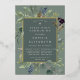 La primera invitación botánica a la comunión sagrada a la moda incluye un borde de hojas botánicas verdes de sabio exuberante y un follaje eucalipto de color agua con guarnecido de Relieve metalizado dorado. Personaliza con tu ceremonia y detalles fiestas con letras modernas en un tono de fondo verde musgo.