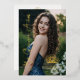 Spanish Exquisite Princess Crown Quinceañera Photo Fancy Calligraphy Script Real Golden Metallic Foil Invitation Card.