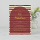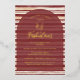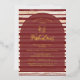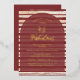 Invitación de cumpleaños con efecto brillo y rayas glamurosas en burgundy con acentos de lámina metálica dorada.