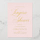 Una invitación a una ducha de novia lencería de bonito con el titular en un gran guión de Relieve metalizado dorado florece con un fondo rosa rubor. Personalice los detalles en el tipo de letra serif.