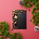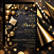 Modern holiday-themed baubles, gifts, ribbons and confetti black and faux gold with real gold foil text "New Year's Eve Party" design.