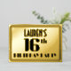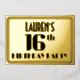 La fachada de este estilo de los años 1920-1930 inspirado en la celebración de los 16 años, el diseño de la tarjeta de invitación al Relieve metalizado incluye un nombre de personalizable, un número inspirado en el estilo Art Deco "16", el mensaje "PARTIDO DE CUMPLEAÑOS" y un borde multilínea. En la parte posterior se incluyen detalles personalizados sobre el evento, como la fecha, hora, lugar/lugar y cualquier otra información importante. Invitaciones lujosas, elegantes y personalizadas como estas podrían ser usadas para invitar a invitados/asistentes a una reunión/fiesta de cumpleaños que se lleva a cabo en celebración del 16 cumpleaños de alguien. [~Z0000606]