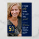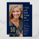 Invitación Con Relieve Metalizado Fiesta de cumpleaños 50 Foto Azul y Oro Real