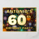 La parte delantera de este audaz y alegre diseño de tarjetas de invitación para Relieves metalizados de 60 años de celebración incluye un nombre personalizado, un gran número "60", el mensaje "¡FIESTA DE CUMPLEAÑOS!" y una frontera. El fondo del frente tiene un patrón divertido y colorido que se asemeja a los fuegos artificiales de celebración. En la parte posterior se incluyen detalles personalizados sobre el evento, como la fecha, la hora, el lugar y cualquier otra información que pueda ser relevante. Las invitaciones a personalizables como estas pueden ser una manera divertida de invitar a los invitados a una reunión de cumpleaños que se lleva a cabo para honrar el cumpleaños número 60 de alguien. [~Z0000602]