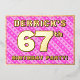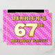 La parte delantera de este alegre y divertido diseño de tarjetas de invitación para Relieve metalizado de cumpleaños sesenta y siete años incluye un nombre personalizado, un gran número "67", el mensaje "¡FIESTA DE CUMPLEAÑOS!" y una frontera. El fondo de la parte delantera está decorado con unas bonitas franjas rosas y rosas claras, con formas cardíacas. En la parte posterior se incluyen detalles personalizados sobre el evento, como la fecha, hora, lugar/ubicación y cualquier otra información que pueda ser relevante. Las invitaciones a personalizables como estas pueden ser una manera divertida de invitar a asistentes/invitados a una reunión de cumpleaños que se lleva a cabo para celebrar el cumpleaños 67 de alguien. [~Z0000603]