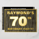 La parte delantera de esta audaz tarjeta de invitación para Relieve metalizado de celebración de 70 años tiene un nombre editable, un gran número "70", el mensaje "¡PARTIDO DE CUMPLEAÑOS!" y una frontera, todo en Relieve metalizado. El fondo del frente presenta un estilo rústico y sofisticado, inspirado en los granos de madera falsa. En la parte posterior se incluyen detalles personalizados sobre el evento, como la fecha, hora, lugar/lugar y cualquier otra información importante. Las invitaciones personalizadas como estas pueden ser usadas para invitar a invitados/asistentes a una reunión de cumpleaños que se lleva a cabo en celebración del cumpleaños 70 de alguien. [~Z0000598]