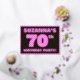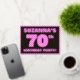 La parte delantera de esta audaz y divertida tarjeta de invitación/invitación a Relieve metalizado para celebraciones de 70 años tiene un nombre de personalizable, un gran número "70", el mensaje "¡FIESTA DE CUMPLEAÑOS!", y una frontera, todas con un patrón de franjas rosa oscuro y claro. La parte posterior incluye detalles personalizados sobre el evento, como la fecha, hora, ubicación y cualquier otra información relevante. Las invitaciones editables como estas podrían ser usadas para invitar a invitados/asistentes a una reunión de cumpleaños que se lleva a cabo para celebrar el cumpleaños 70 de alguien. [~Z0000597]