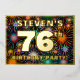 La parte delantera de este emocionante diseño de tarjetas de invitación para Relieves metalizados de cumpleaños setenta y seis incluye un nombre personalizado, un gran número "76", el mensaje "¡FIESTA DE CUMPLEAÑOS!" y un borde. El fondo del frente presenta un llamativo y colorido patrón inspirado en los reventados fuegos artificiales de celebración. En la parte posterior se incluyen detalles personalizados sobre el evento, como la fecha, la hora, el lugar/lugar y cualquier otra información que pueda ser útil. Las invitaciones al personalizable como estas pueden ser una manera divertida de invitar a invitados/asistentes a una fiesta de cumpleaños que se lleva a cabo para celebrar el cumpleaños 76 de alguien. [~Z0000602]
