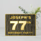 La parte delantera de esta audaz tarjeta de invitación a Relieve metalizado de 77 años de fiesta/celebración incluye un nombre personalizado, un gran número "77", el mensaje "¡FIESTA DE CUMPLEAÑOS!", y una frontera, todo en Relieve metalizado. El fondo del frente presenta un estilo rústico y sofisticado, inspirado en los granos de madera falsa. En la parte posterior se incluyen detalles personalizados sobre el evento, como la fecha, hora, lugar/ubicación y cualquier otra información útil. Las invitaciones personalizadas como estas pueden ser usadas para invitar a asistentes/invitados a una fiesta de cumpleaños/reunión que se lleva a cabo en celebración del cumpleaños 77 de alguien. [~Z0000598]