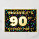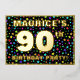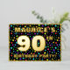 La parte delantera de esta emocionante y alegre tarjeta de invitación a Relieve metalizado de 90 años de celebración/fiesta presenta un nombre personalizado, un gran número "90", el mensaje "¡FIESTA DE CUMPLEAÑOS!", y una frontera. El fondo del frente tiene un patrón de estrellas animado y colorido. En la parte posterior se incluyen detalles personalizados sobre el evento, como la fecha, la hora, el lugar y cualquier otra información que pueda ser útil. Invitaciones personalizadas como estas pueden ser una manera divertida de invitar a invitados/asistentes a una reunión de cumpleaños que se lleva a cabo para celebrar el cumpleaños 90 de alguien. [~Z0000600]
