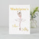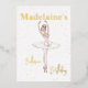 Una elegante bailarina en un tutu rosado es la característica principal de esta invitación a la fiesta de cumpleaños Ballerina, chica. El frente tiene el texto en Relieve metalizado oro real con manchas doradas en segundo plano. Cambia fácilmente la información para tu propio diseño personal. De los finos diseños de Chessie.