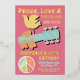 Invitación Con Relieve Metalizado Fiesta de cumpleaños Hippie de Woodstock