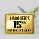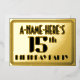 La fachada de este diseño inspirado en la época de los años 1920-1930, inspirado en la celebración de la fiesta de Relieve metalizado de 15 años, incluye un nombre de personalizable, un estilo Art Deco inspirado en el número "15", el mensaje "PARTIDO DE CUMPLEAÑOS" y un borde multilínea. En la parte posterior se incluyen detalles personalizados sobre el evento, como la fecha, la hora, el lugar/lugar y cualquier otra información que pueda ser relevante. Las invitaciones de personalizable lujosas, elegantes y de diseño, como estas, podrían ser usadas para invitar a los invitados a una fiesta de cumpleaños que se celebra en celebración del 15 cumpleaños de alguien. [~Z0000606]