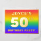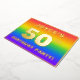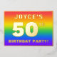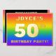 El frente de este diseño de tarjeta de invitación de cumpleaños número cincuenta con foil presenta un nombre personalizado, un gran número "50º", el mensaje "¡FIESTA DE CUMPLEAÑOS!" y un borde. El fondo del frente presenta un patrón de gradiente vibrante, multicolor e inspirado en el espectro del arcoíris. La parte trasera incluye detalles personalizados sobre el evento, como la fecha, hora, lugar/ubicación y cualquier otra información relevante. Las invitaciones personalizables como estas pueden ser una forma divertida de invitar a los invitados a una fiesta/reunión de cumpleaños que se celebra con motivo del 50 cumpleaños de alguien.