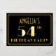 El frente de esta invitación al Relieve metalizado de celebración de cincuenta y cuatro años inspirada en los Roaring Twenties incluye un nombre personalizado, un gran número inspirado en el estilo Art Déco "54th", el mensaje "BIRTHDAY PARTY" y un patrón fronterizo compuesto de líneas. El frontal también presenta un fondo de color negro de forma predeterminada, pero se puede personalizar a un color diferente si se desea. En la parte posterior se incluyen detalles personalizados sobre el evento, como la fecha, la hora, el lugar y cualquier otra información importante. Invitaciones lujosas, elegantes y editables como estas podrían ser usadas para invitar a los invitados a una fiesta de cumpleaños/reunión que se lleva a cabo para honrar el cumpleaños 54 de alguien. [~Z0000591]