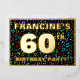 El frente de este llamativo y vibrante diseño de tarjeta de invitación de cumpleaños número sesenta presenta un nombre personalizado, un gran número "60º", el mensaje "¡FIESTA DE CUMPLEAÑOS!" y un borde. El fondo de la parte frontal tiene un patrón de símbolos musicales coloridos y animados. La parte trasera incluye detalles personalizados sobre el evento, como la fecha, hora, lugar/ubicación y cualquier otra información importante. Las invitaciones personalizables como estas pueden ser una forma divertida de invitar a los asistentes a una fiesta de cumpleaños que se celebra para honrar el 60 cumpleaños de alguien. Pueden ser especialmente especiales si esa persona es compositora de canciones, músico, cantante, compositora o simplemente ama la música.