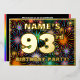El frente de este diseño de tarjeta de invitación de cumpleaños número noventa y tres audaz y alegre cuenta con un nombre editable, un gran número "93º", el mensaje "¡FIESTA DE CUMPLEAÑOS!" y un borde. El fondo del frente tiene un patrón colorido y llamativo que se asemeja a fuegos artificiales de celebración que estallan. La parte trasera incluye detalles personalizados sobre el evento, como la fecha, hora, lugar/ubicación y cualquier otra información relevante. Invitaciones personalizables como estas pueden ser una forma divertida de invitar a los asistentes a una fiesta/reunión de cumpleaños que se celebra en conmemoración del 93 cumpleaños de alguien. [~Z0000602]